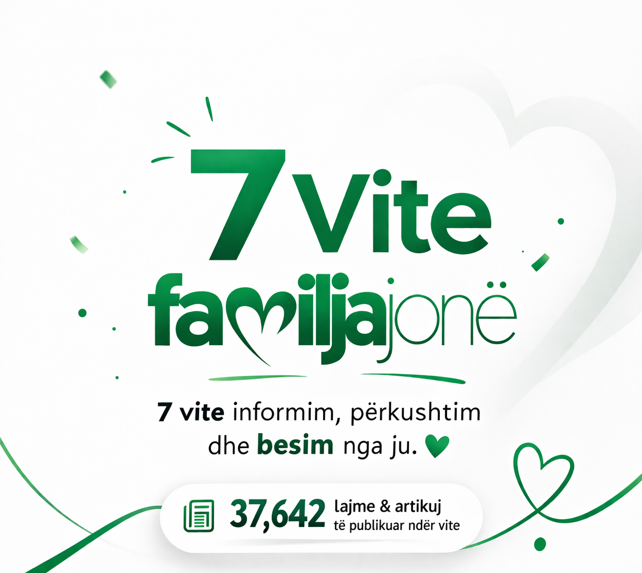 Gjatë këtyre viteve, FamiljaJonë ka arritur të publikojë mbi 37,642 lajme dhe artikuj, duke u shndërruar në një burim të rëndësishëm informacioni për familjen, prindërimin, shëndetin, edukimin dhe çështje të përditshme që prekin jetën tonë.