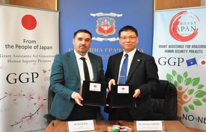 Kontrata e grantit u nënshkrua nga i ngarkuari me punë i Ambasadës së Japonisë në Kosovë, Hiroyasu Tanigaki dhe kryetari i Komunës së Graçanicës, Novak Zhiviq, si partner zbatues i projektit.