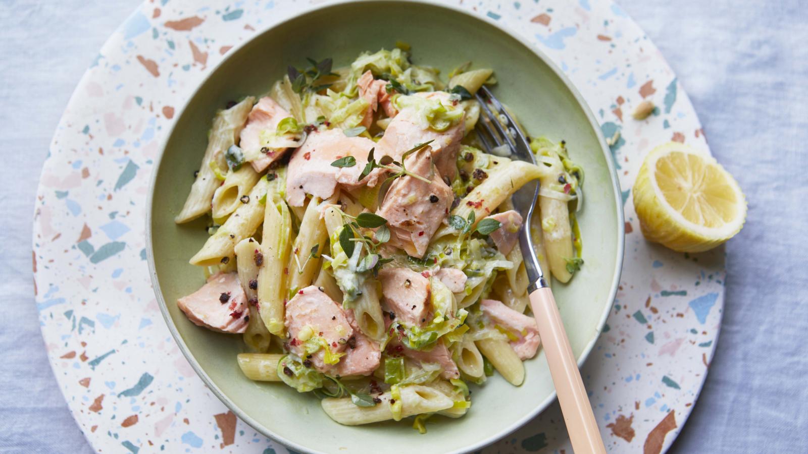 Shërbejeni pjatën, duke ndarë makaronat në dy pjata dhe duke shtuar sipër secilës pjatë copëza salmoni të thërrmuara me pirun. /BBC/