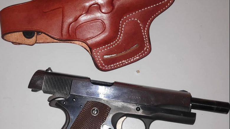 “Në kuadër të veprimeve operative që po kryen policia me qëllim parandalimin dhe zbulimin e veprave kriminale, dje rreth orës 20:30, në dalje të Prishtinës, ka ndaluar veturën Golf me targë Kosove. Marrë parasysh vendin si dhe rrethanat në të cilat ishte ndaluar vetura, policia kishte ushtruar një kontroll të detajuar ndaj personave dhe veturës me ç’ rast ka arritur që të gjej dhe të sekuestroj: Një revole të tipit COLT, shtatë copë fishek, kalibër 45 mm, si dhe një këllëf revoleje”, ka thënë Borovci.